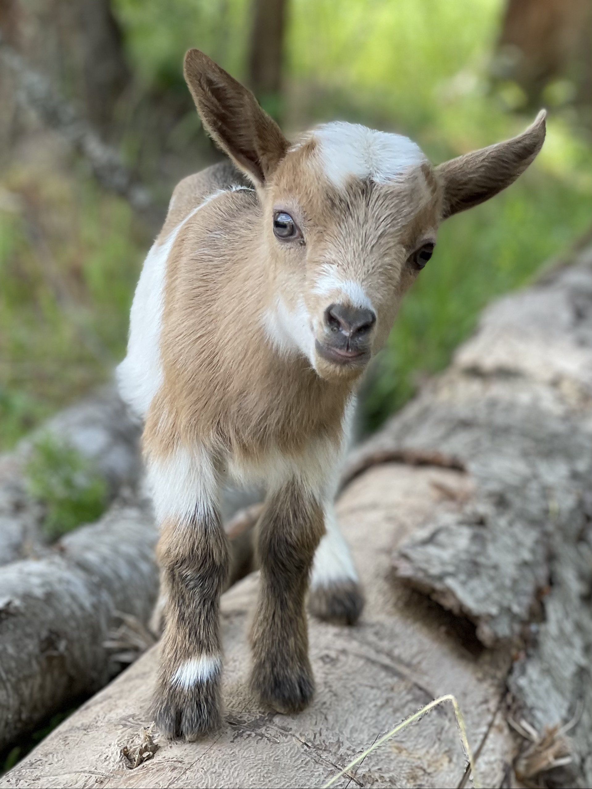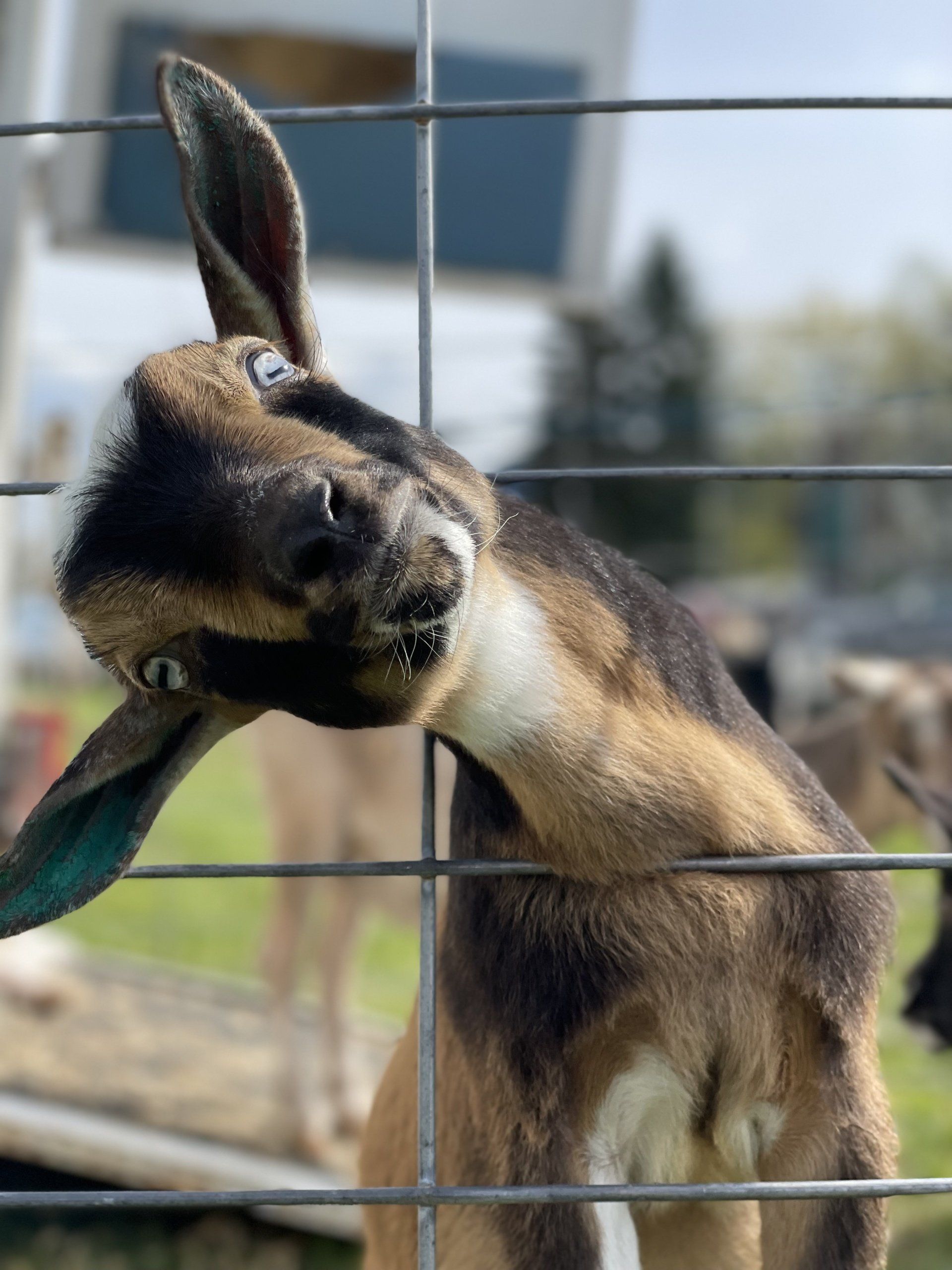 Here are some frequently asked questions. Multiples? They are herd animals so do much better in 2’s and 3’s. So we can set you up with two or three to go home. What do they eat? They are still on bottles. We will provide a bottle for each baby goat that needs to be rinsed out after each use and sanitized (run through the dishwasher) every day. They are also starting to eat grain and hay. We’ll provide both grain and hay for you to put out for them to graze if you provide the milk. Just store bought whole cows milk. Depending on the age of the goats you bring home they are drinking 2 to 3 16oz bottles a day. How do I feed them? When you prepare their bottles the milk needs to be warmed up so it’s not refrigerator cold. These babies are older and hardier so they don’t need the milk too warm just not cold. It’s fine to microwave the milk in the bottles or heat it up on the stove in a pot. Just make sure there are no hot spots. The microwave will heat the top but not the bottom so I gently shake the bottle around afterwards. Where do they sleep? We’ll bring a large dog crate for them to sleep in. You can put them inside or outside as long as it’s out of the wind and rain. You can also put them in a laundry room or bathroom so you can turn the lights out and close the door when it’s night time. Are they noisy? Yes, they can be. Bottle babies will squawk and cry when they are hungry. If they see you coming with a bottle they will start making lots of excited noises. But most of the time they don't make any noise. Can they run around the house? Yes, absolutely. We play with ours in the house where we have hardwood floors and can clean up. I also keep a close eye on them and when they stop and start squatting I run them outside or be ready to clean up real quick. Some people put baby diapers on them to avoid messes all together. I’ve never done that. Can I put them in my yard? Make sure you have a secured area. Goats are very tiny and can squeeze through most fences. Test this out to make sure they can be contained. Small dog or baby fencing works great to secure a smaller area within your yard for them.