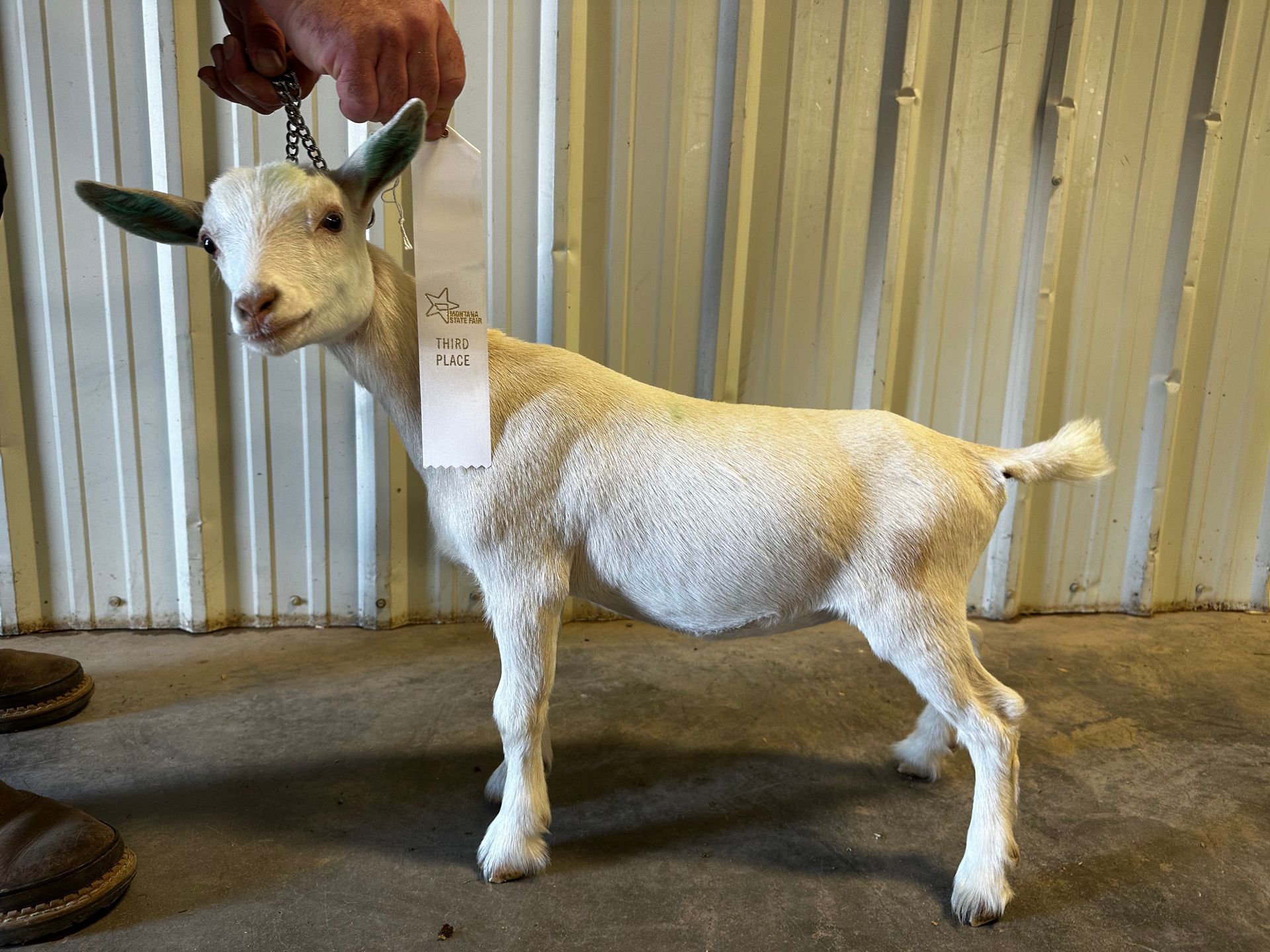 Honey Badger is out of one of our best milkers who is evaluated at the top 5% percent of Nigerian Dwarfs. Honey is a very correct doeling showing nice shoulder assembly, feet and legs.