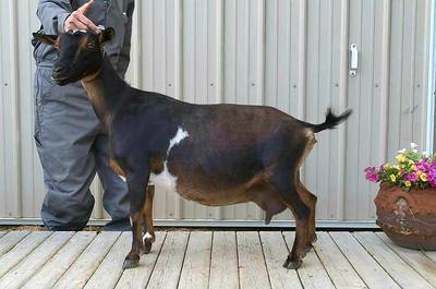 This lovely girl is wide from shoulders to hips with nice angulation in the rump and wide open in the escutcheon. Her dam has excellent brisket extension and her sire's dam has a lovely udder with large teats.