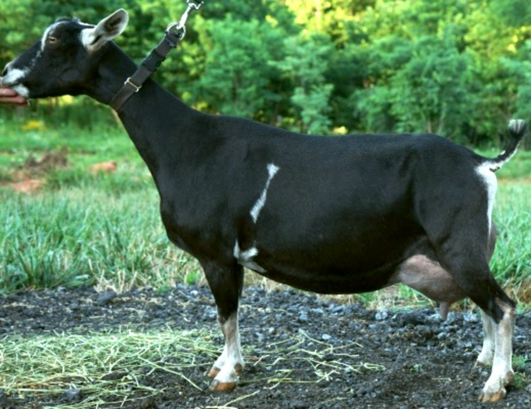 SwissMiss is truly one of the finest Nigerian Dwarfs and is a leader of the breed in appraised conformation as well as production. We are thrilled to carry her genetics in our breeding program.