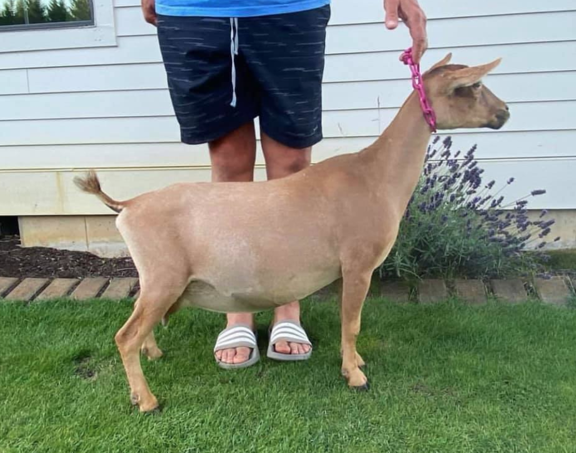 Poppy placed 20th as a yearling in the 2023 ADGA Nationals in Redmond Oregon.