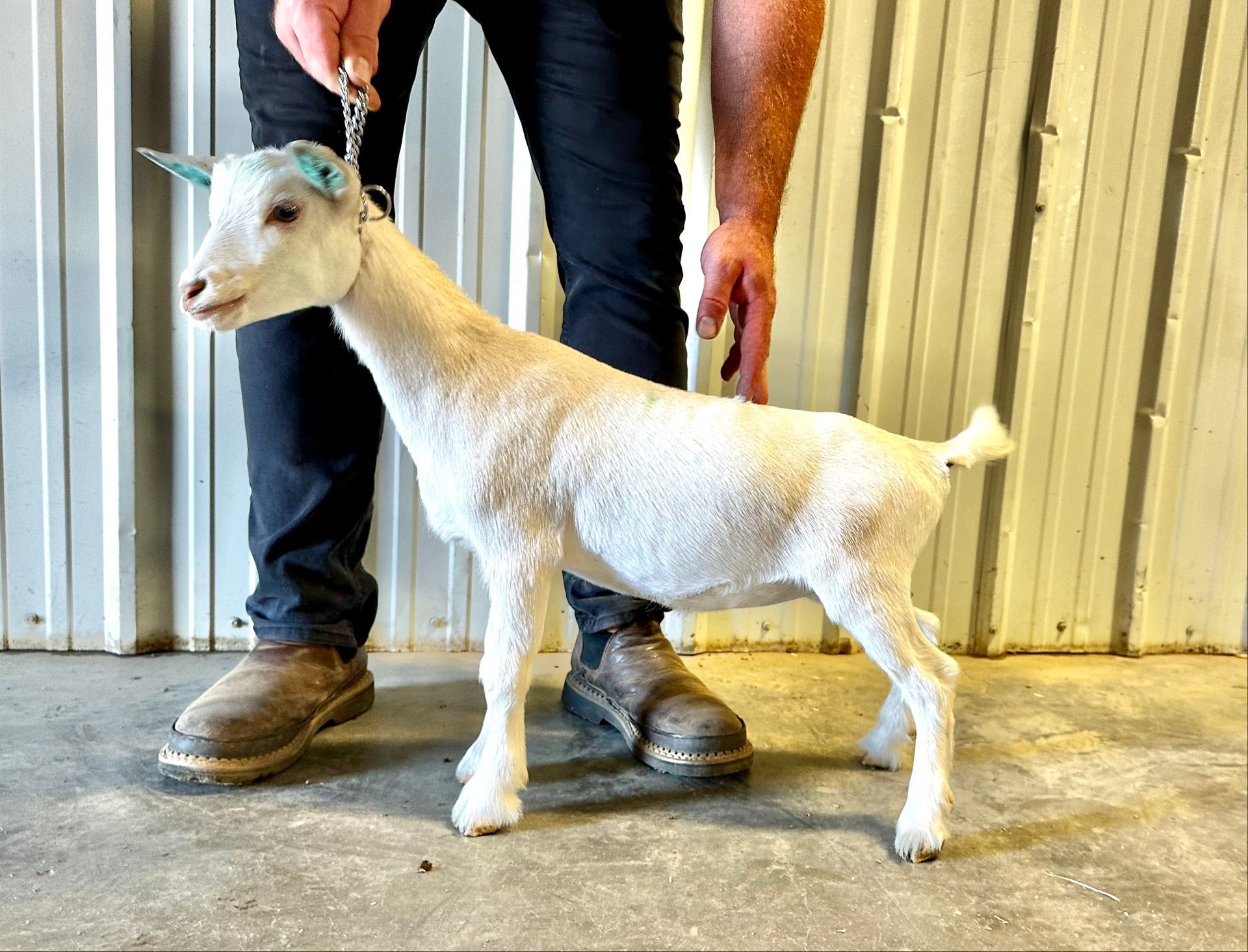 Honey Badger is out of one of our best milkers who is evaluated at the top 5% percent of Nigerian Dwarfs. Honey is a very correct doeling showing nice shoulder assembly, feet and legs.